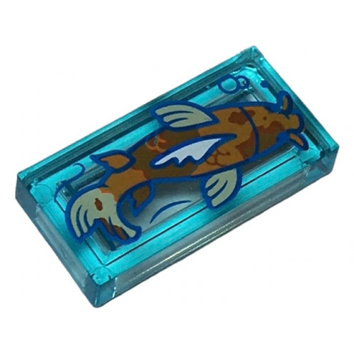 LEGO csempe 1×2 sötét narancssárga koi hal mintával, átlátszó világoskék (105178) --- Debrecenben raktáron!