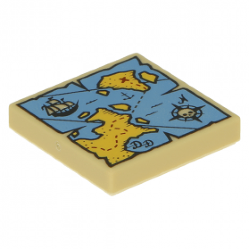 LEGO csempe 2×2 térkép mintával, sárgásbarna (19524) --- Debrecenben raktáron!
