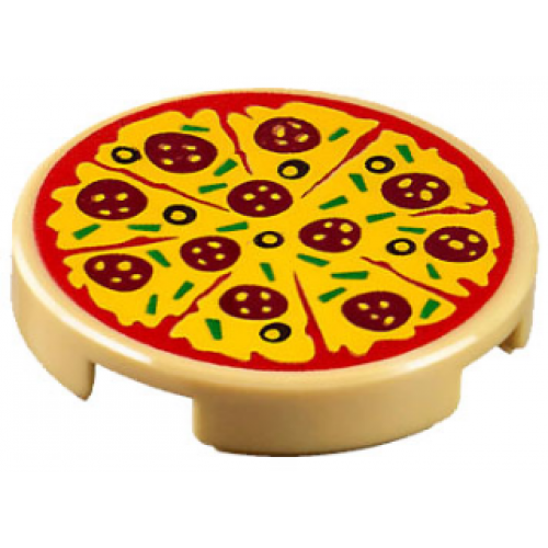 LEGO csempe kerek 2×2 pizza mintával, sárgásbarna (29629) --- Debrecenben raktáron!