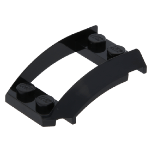 LEGO ék 4×3 íves középen nyitott tetején két-két bütyökkel, fekete (47755) – részletes információk: