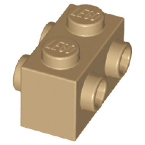 LEGO kocka 1x2 két oldalán két-két bütyökkel, sötét sárgásbarna (52107)