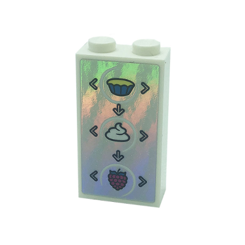 LEGO kocka 1x2×3 sütemény mintával (matrica), fehér (22886pb10) – részletes információk:
