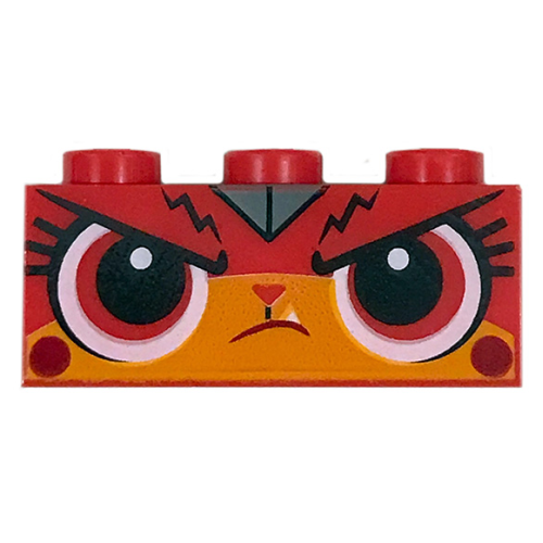 LEGO kocka 1x3 mérges macska arc (Unikitty) mintával, piros (44369) – részletes információk: