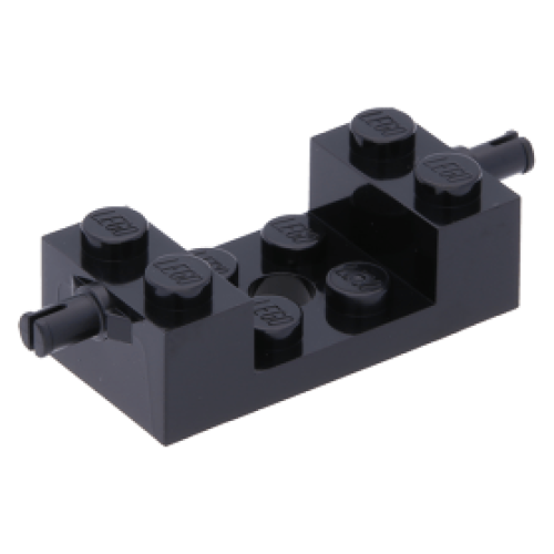 LEGO kocka 2x4 két oldalán keréktartóval középen 2×2 kivágással, fekete (18892)