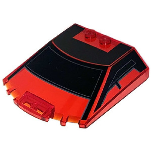 LEGO szélvédő 6×6×1 1/3 íves fekete mintával (SW), átlátszó piros (100507)