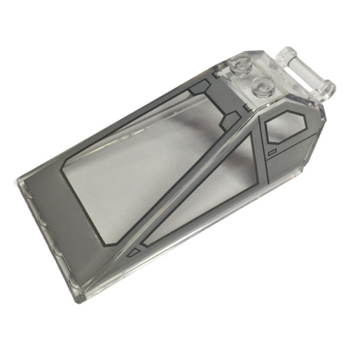 LEGO szélvédő 6 x 4 x 1 hatszögű egyik végén fogantyúval mintával (Lotus), átlátszó fekete (1574)